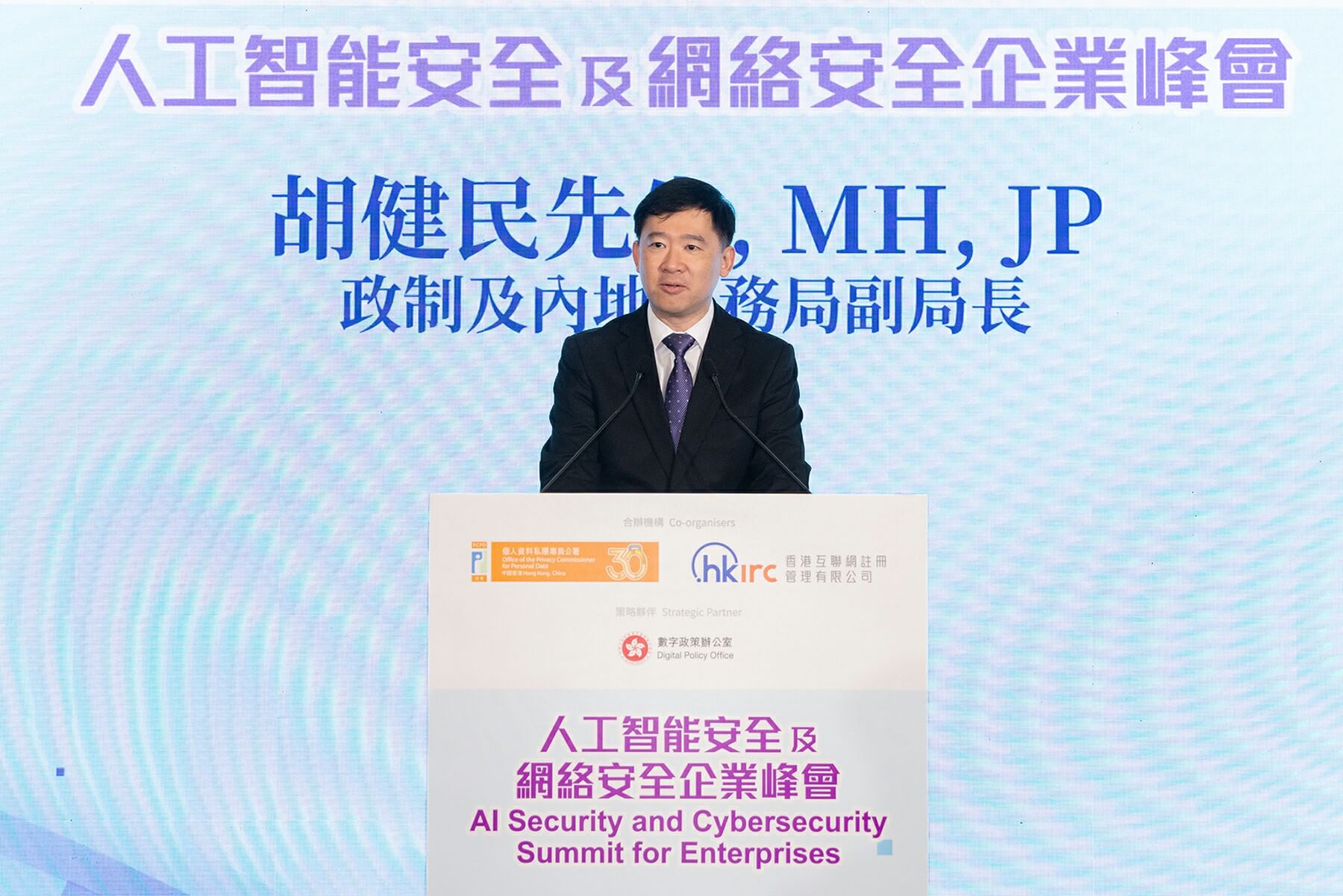 政制及內地事務局副局長胡健民先生, MH, JP致開幕辭時表示︰「國家早前發布的『十五五』規劃擘劃了國家未來五年的發展藍圖,明確要求夯實國家安全保障。在原則層面,『十五五』規劃強調,必須堅持統籌發展和安全。加強AI安全、網絡安全,是政府、業界及社會各界的共同責任。讓我們攜手以高水平安全護航高質量發展,為香港對接國家『十五五』規劃、更好融入及服務國家發展大局作出更大貢獻。」
