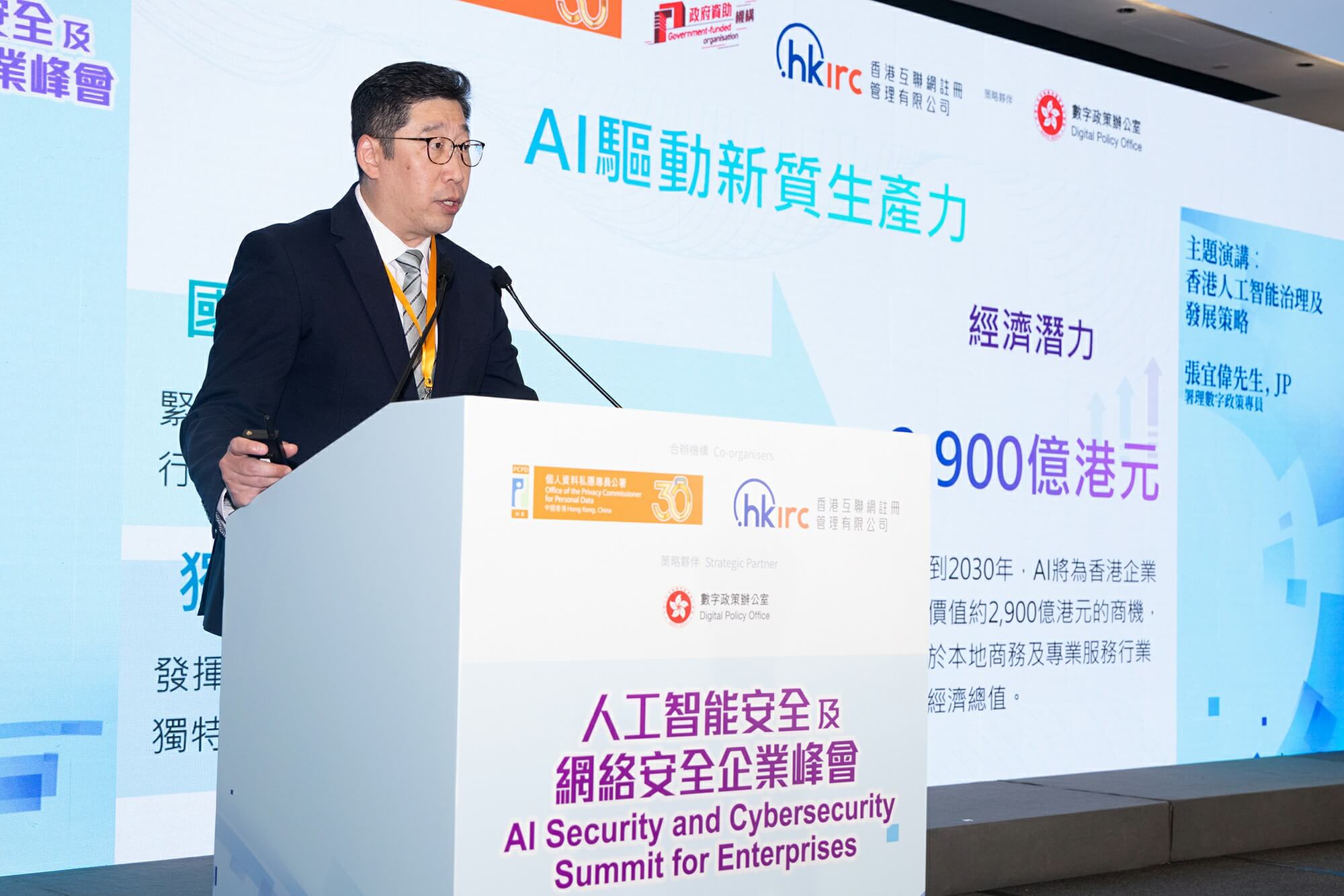 (2026年4月1日)香港互聯網註冊管理有限公司(HKIRC)聯同個人資料私隱專員公署(私隱專員公署)於3月31日合辦「人工智能安全及網絡安全企業峰會」(峰會)。峰會獲數字政策辦公室擔任策略夥伴,聚焦「網絡安全」及「人工智能(AI)安全」兩大重點範疇,邀請來自不同界別的代表發表主題演講及參與專題討論,藉此提升各類機構(包括中小型企業)對相關風險的認知及防禦能力,以應對在營商環境中所面對的網絡安全及AI安全風險。峰會吸引逾620名來自各行各業的企業代表參加。