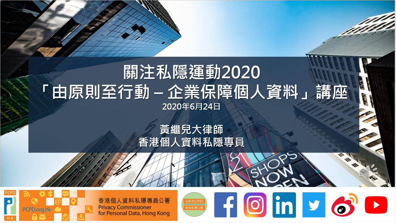The Privacy Commissioner for Personal Data, Hong Kong (PCPD) Mr Stephen Kai-yi WONG today hosted online workshop “From Principles to Practice – Personal Data Protection for Enterprises”, which was attended by more than 850 participants comprising privacy management professionals, members of the Data Protection Officers’ Club, employers, executives, human resources practitioners, etc. Through video conferencing and live streaming on social media platforms, the PCPD explained how to conduct Privacy Impact Assessment and implement Privacy by Design, and the essence of data ethics and its practice; and provided updates on the two-year enforcement of the General Data Protection Regulation of the European Union and the latest privacy-related regulations in the mainland. The PCPD also discussed privacy issues relating to COVID-19, including protection of privacy when using video conferencing apps, safeguards for employees’ personal data under the pandemic, etc.