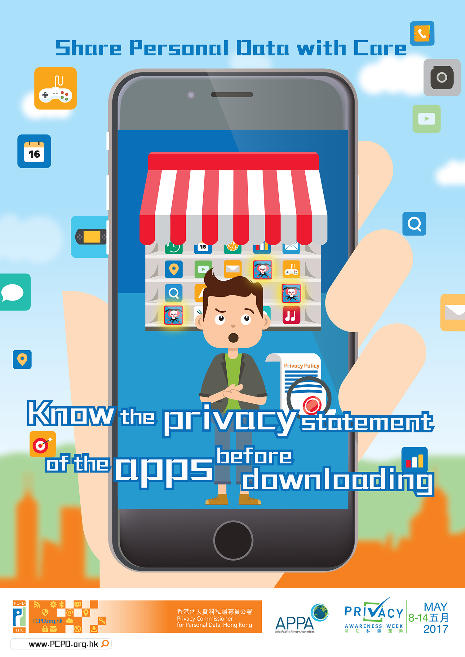 (8 May 2017) The Privacy Commissioner for Personal Data, Hong Kong (“PCPD”) together with members of the Asia Pacific Privacy Authorities (“APPA”) launches the “Privacy Awareness Week 2017” (“PAW 2017”) from 8 to 14 May.