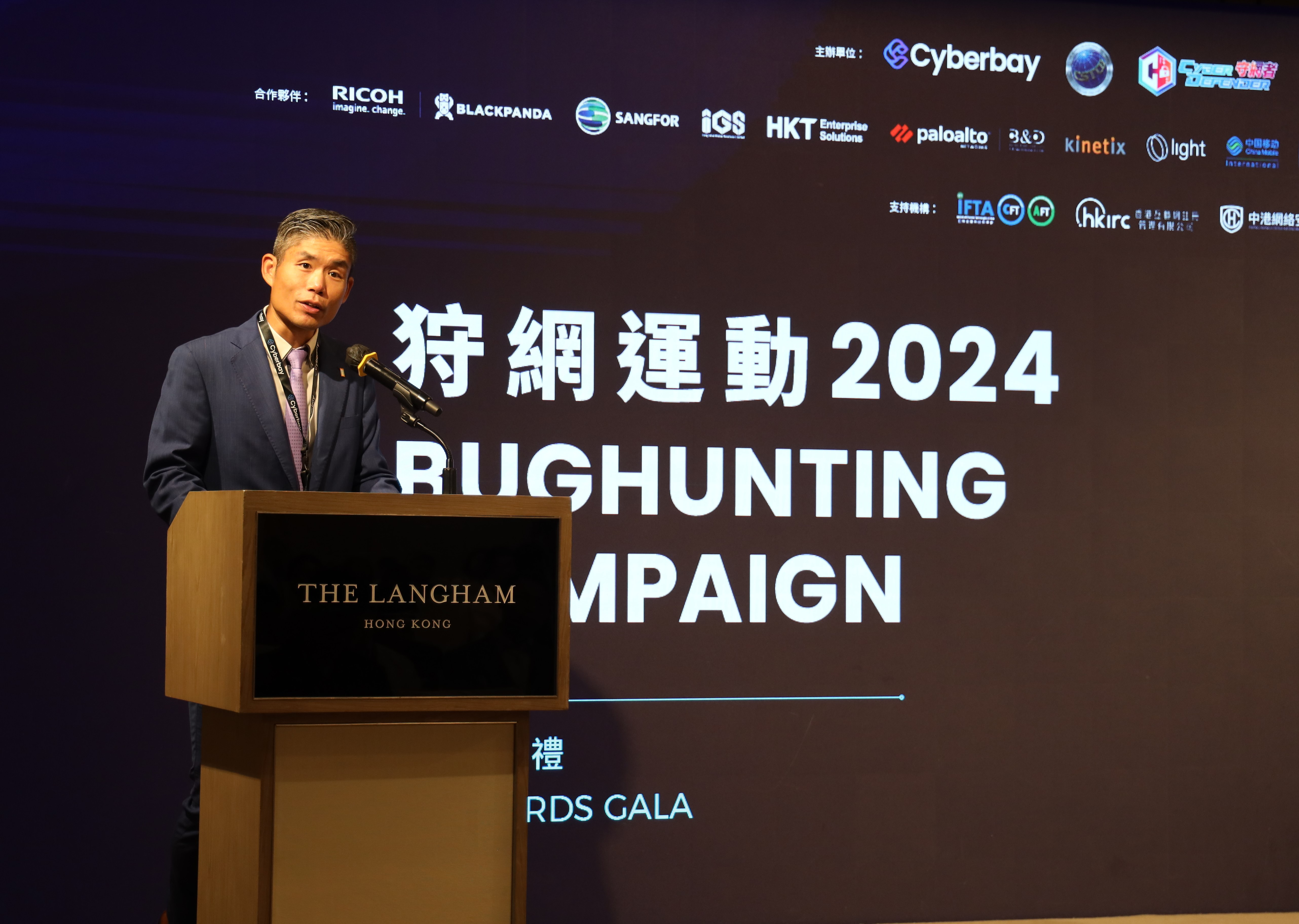 Mr Brad KWOK, Chief Personal Data Officer (Compliance and Enquiries) of the Office of the Privacy Commissioner for Personal Data (PCPD), attended the “Bug Hunting Campaign 2024” Awards Gala on 26 September to present awards and share the latest trends of data breach incidents.