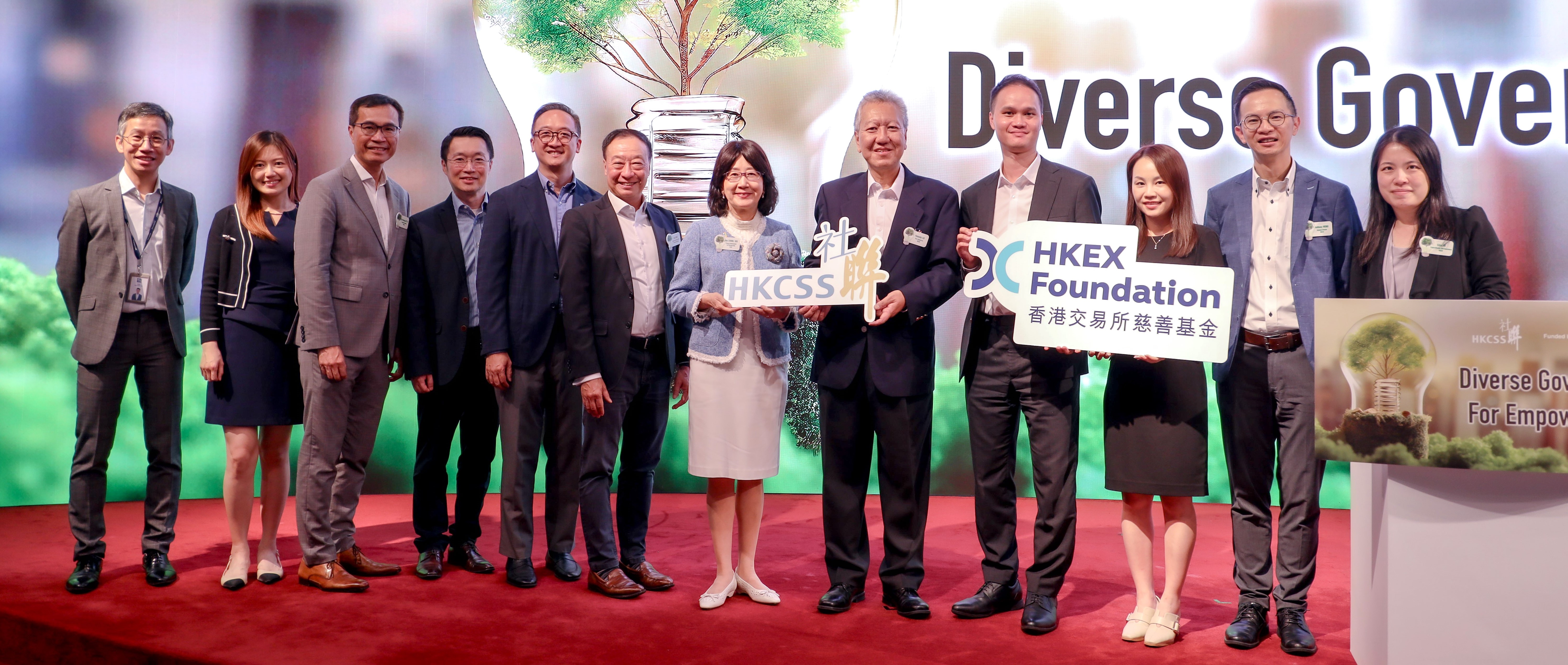 The Privacy Commissioner, Ms Ada CHUNG Lai-ling (seventh from left), delivered a keynote speech at the “Navigating the Governance Challenge in the Digital Era” Seminar and took a picture with the Vice-chairperson of the Hong Kong Council of Social Service Dr Kennedy LIU Tat-yin (fifth from right) and other guests.