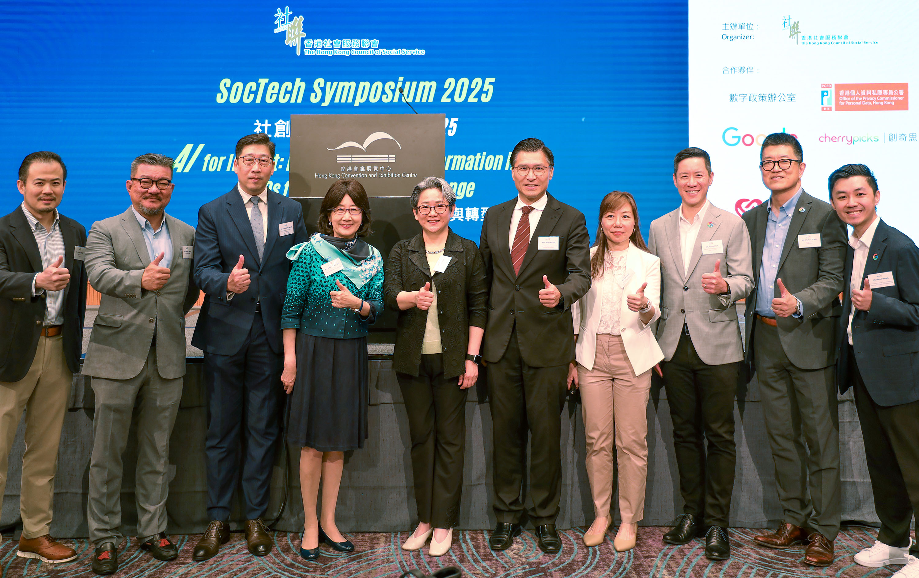 The Privacy Commissioner, Ms Ada CHUNG Lai-ling (fourth left), delivered a keynote speech at the “SocTech Symposium 2025”.