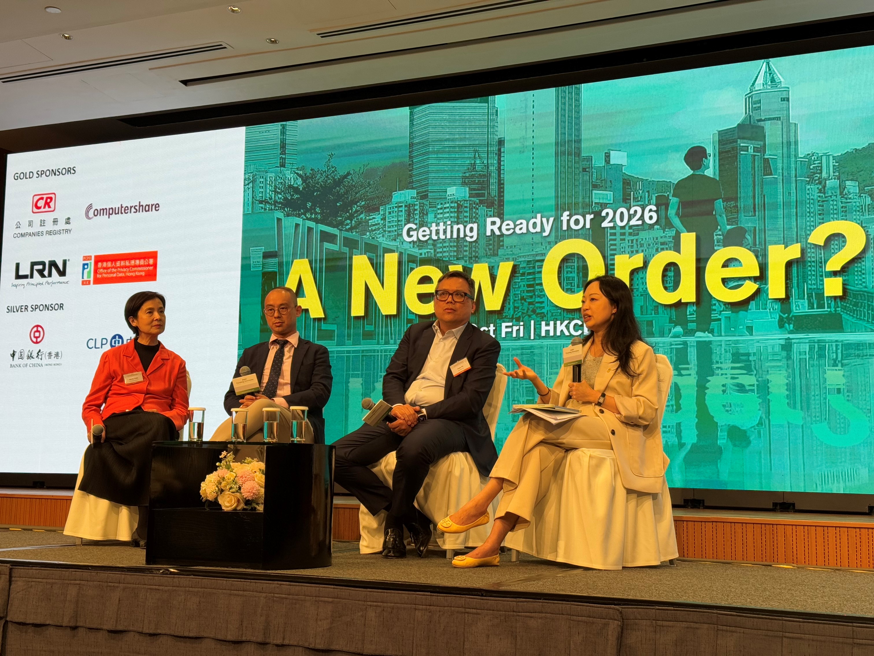 Assistant Privacy Commissioner for Personal Data (Compliance, Global Affairs and Research), Ms Joanne WONG (first from right), spoke as a panellist at the 2025 Annual Conference of Practising Governance.
