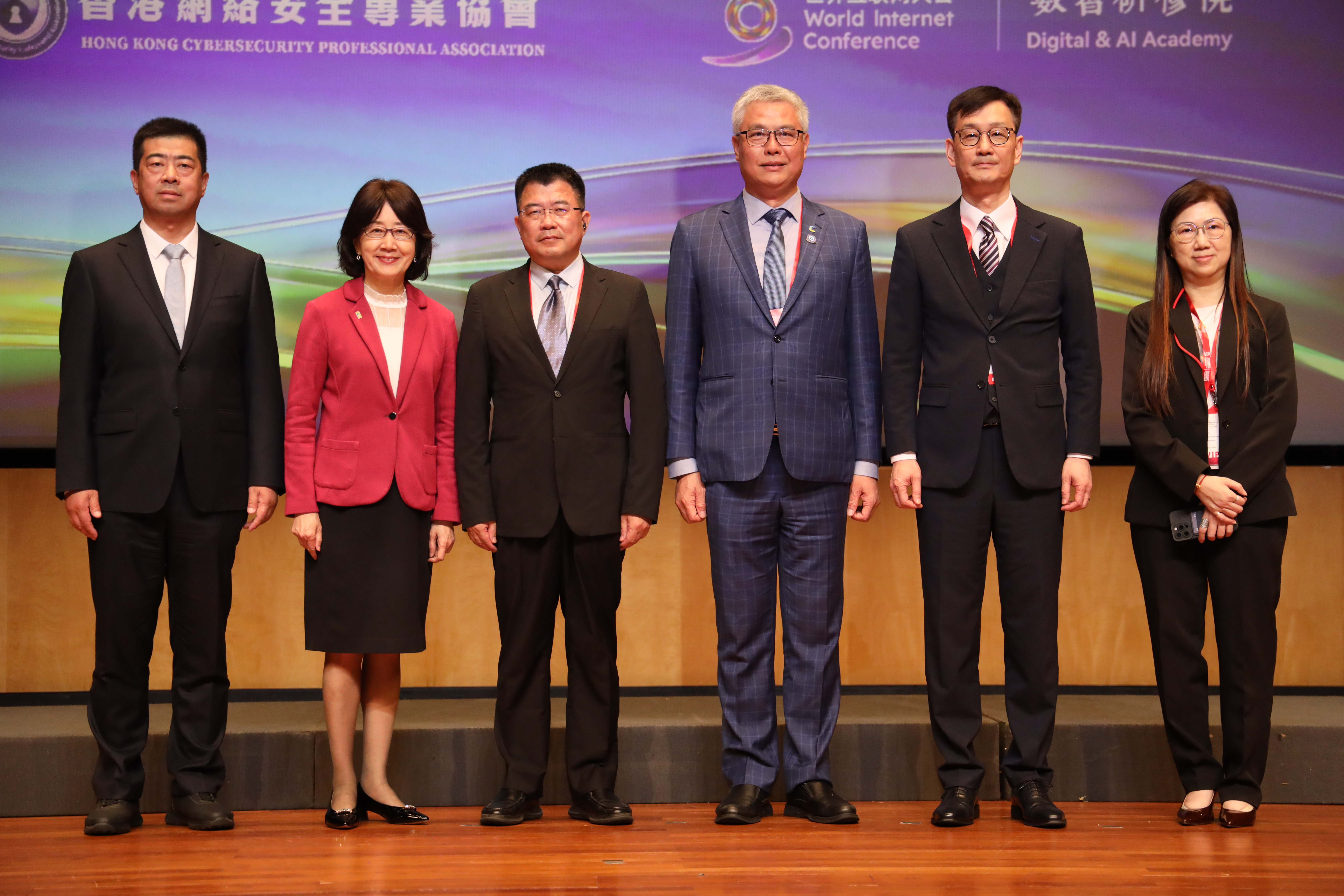 The Privacy Commissioner, Ms Ada CHUNG Lai-ling (second left), attended the 2026 World Internet Conference Asia-Pacific Summit, and took a group photo with the Deputy Division Director-level Inspector of the Information Center, Liaison Office of the Central People Government in the Hong Kong Special Administration Region, Mr ZHOU Wuhu (third left), the President of the Hong Kong Cybersecurity Professional Association, Dr Rocky CHENG Chung-ngam, JP (third right), the Commissioner of Critical Infrastructure (Computer-system Security), Mr Francis CHAN Wing-on (second right), the Director of the China Information Technology Security Evaluation Center, Mr PENG Tao (first left) and the Assistant Commissioner for Digital Policy (Project Governance and Cybersecurity), Ms Candy CHAN Wai-chung (first right).