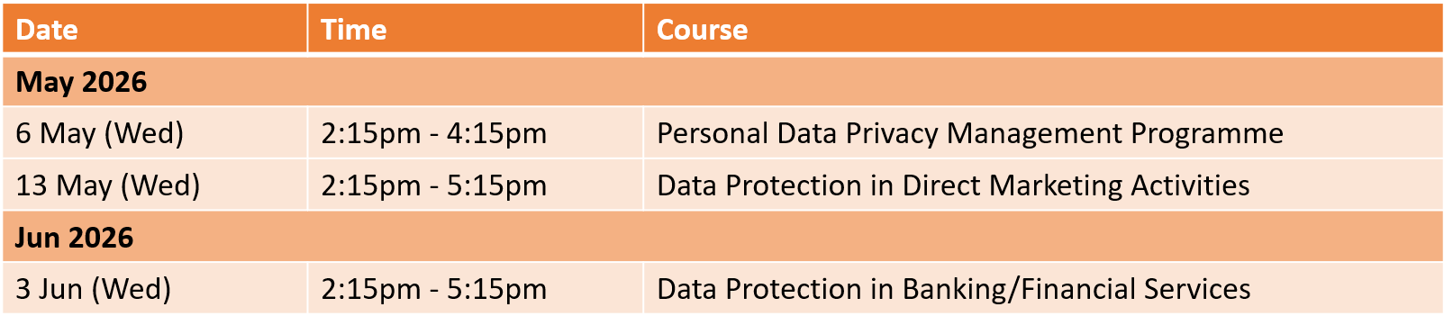 The PCPD organises free introductory seminars regularly to raise public awareness and their understanding of the PDPO. Details of the upcoming sessions are shown below: