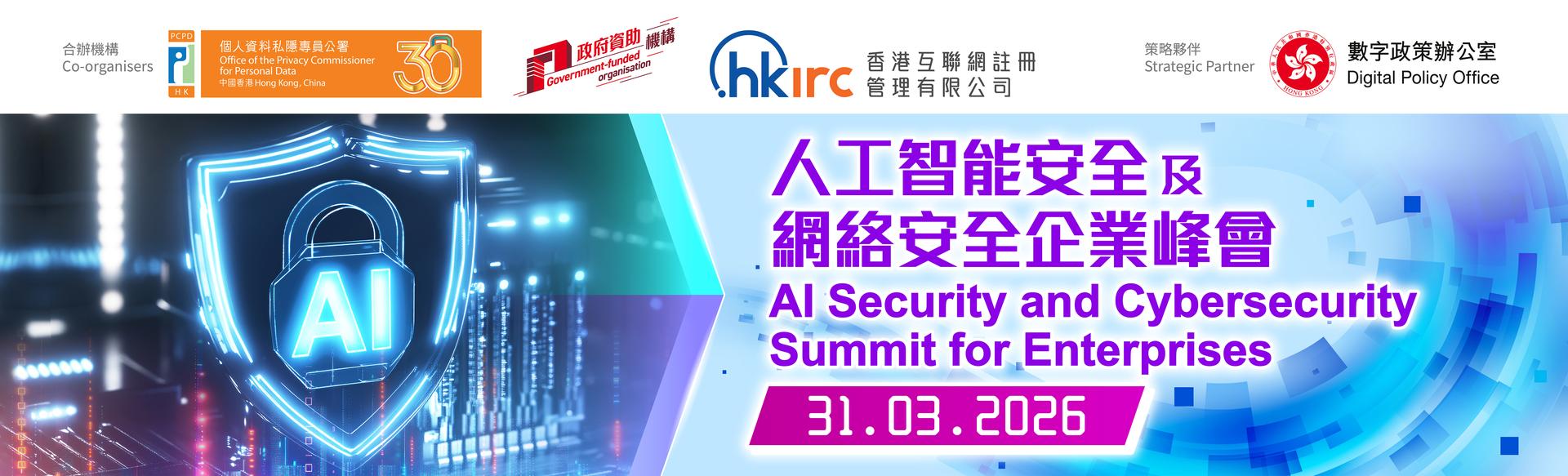 The PCPD and the Hong Kong Internet Registration Corporation Limited (HKIRC) co-organise the AI Security and Cybersecurity Summit for Enterprises (Summit) today (31 March 2026). With the Digital Policy Office acting as a strategic partner, the Summit brings together leading experts, industry leaders, policymakers and company directors to explore the evolving AI security and cybersecurity threat landscape, exchange innovative solutions, and share insights into strengthening cybersecurity and data protection in the age of AI.