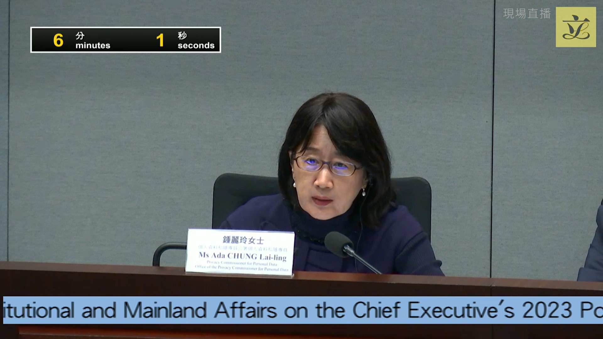 私隐专员钟丽玲出席立法会政制事务委员会政策简报会。