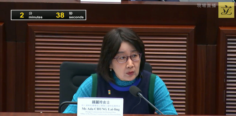 私隐专员钟丽玲出席立法会政制事务委员会会议,向议员简报私隐专员公署2023年的工作。