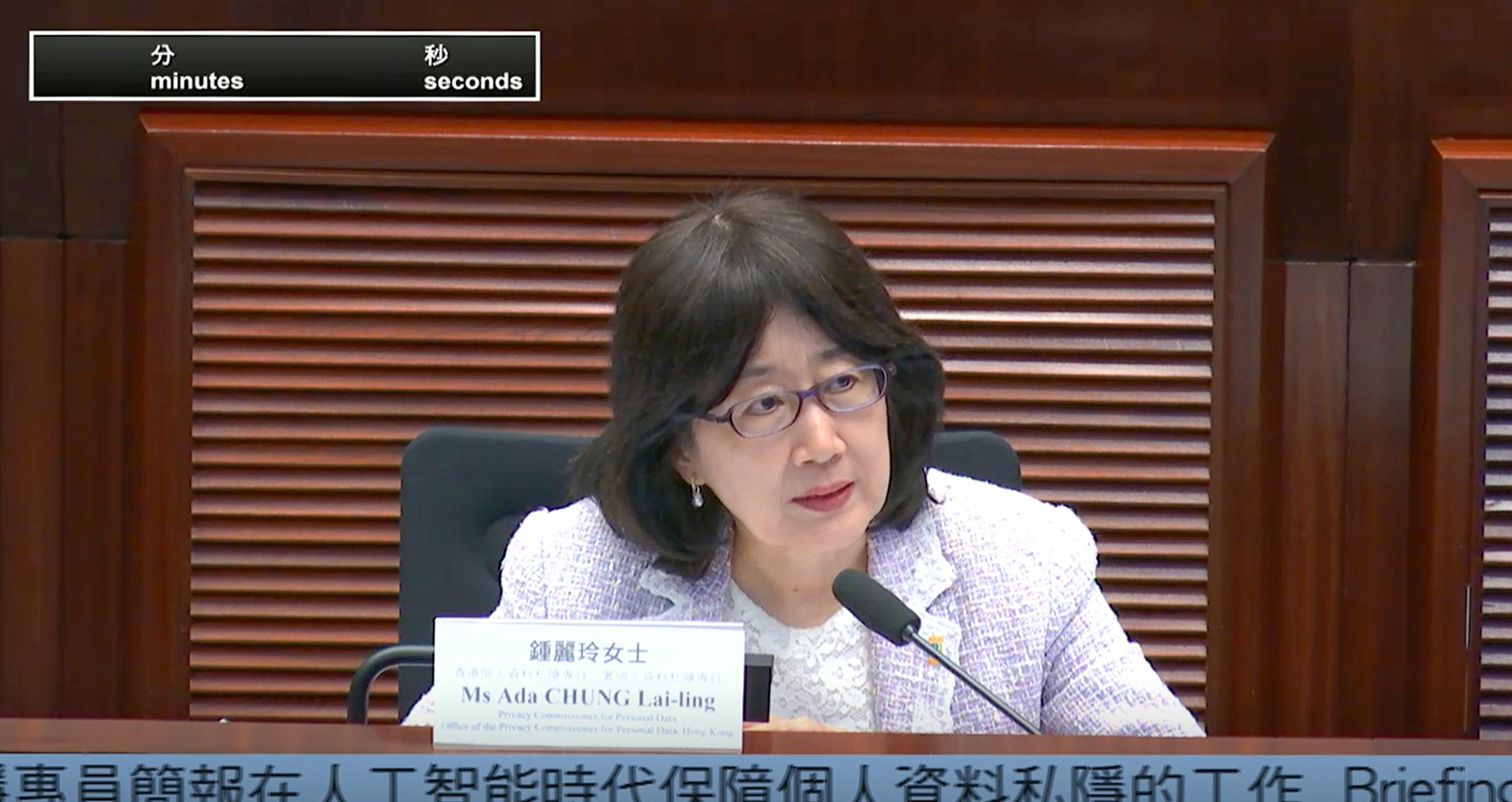 个人资料私隐专员(私隐专员)钟丽玲于5月19日出席立法会政制事务委员会会议,向议员简报有关人工智能(AI)时代保障个人资料私隐的工作。
