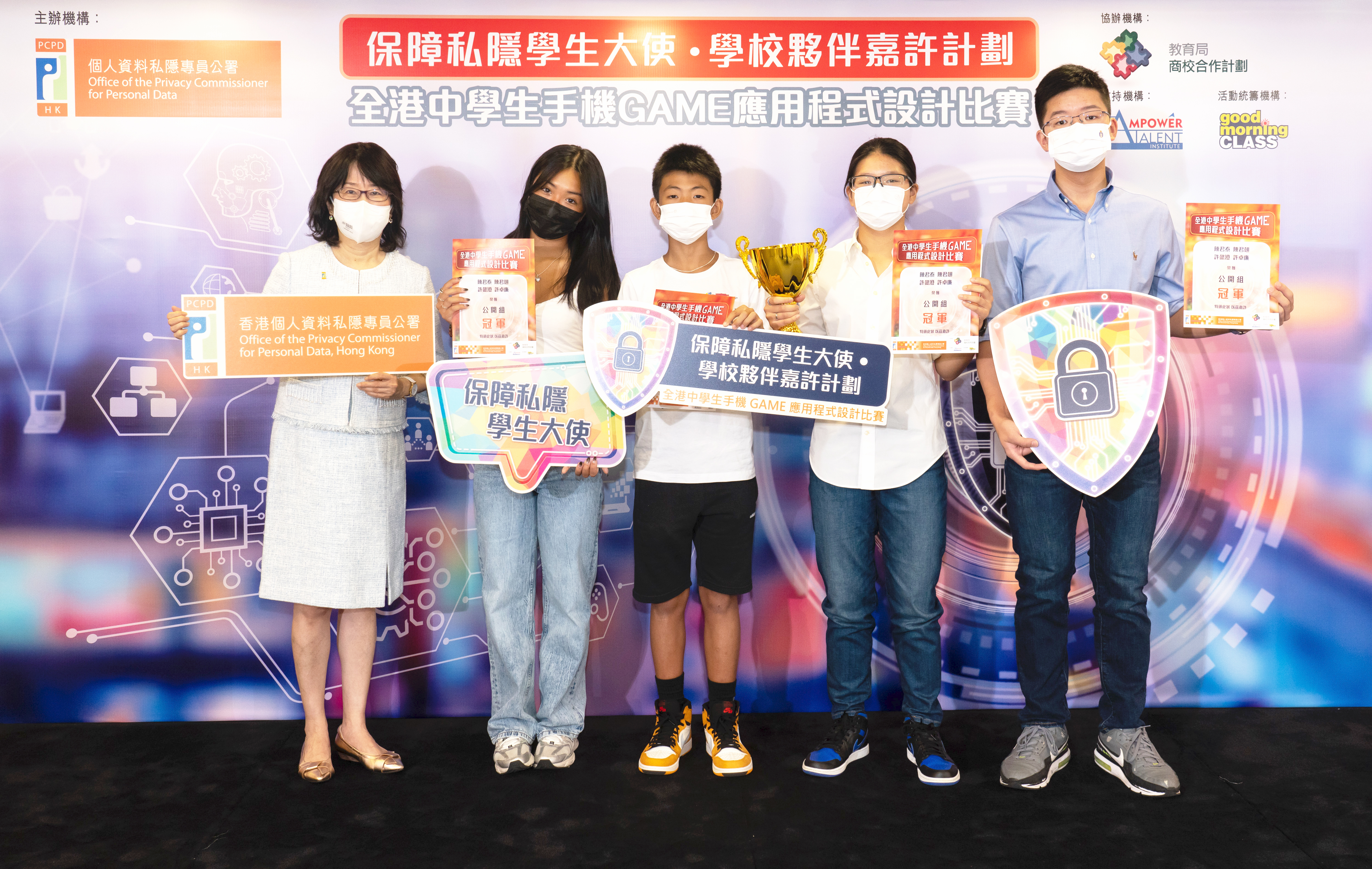 个人资料私隐专员公署(私隐专员公署)成功举办「保障私隐学生大使‧学校夥伴嘉许计划」(嘉许计划),吸引超过16,000名中学生积极参加。嘉许计划获教育局「商校合作计划」协办,当中设有「全港中学生手机GAME应用程式设计比赛」(设计比赛),设计比赛反应非常踊跃,私隐专员公署共收到超过来自400多名中学生所提交的150多个参赛作品。经评审委员会的严格评核,胜出的队伍获颁奖杯、奖状及奖学金,以嘉许同学们发挥创意,将尊重及保障个人资料私隐的讯息融入作品中。私隐专员公署亦颁发嘉许计划的钻石、金、银、铜章予64间中学,以表扬得奖学校过去一年致力缔造尊重及保障私隐的校园环境。