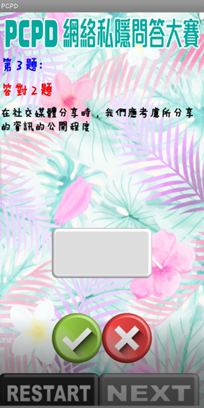 公开组队伍钟嘉瑞、朱家慧及刘馥颍同学获得亚军,其作品(左)透过三款小游戏提醒玩家注意保障个人资料私隐,作品同时获得最具创意大奖。而季军(右)作品则透过问答游戏的方式提供丰富的保障个人资料私隐资讯。