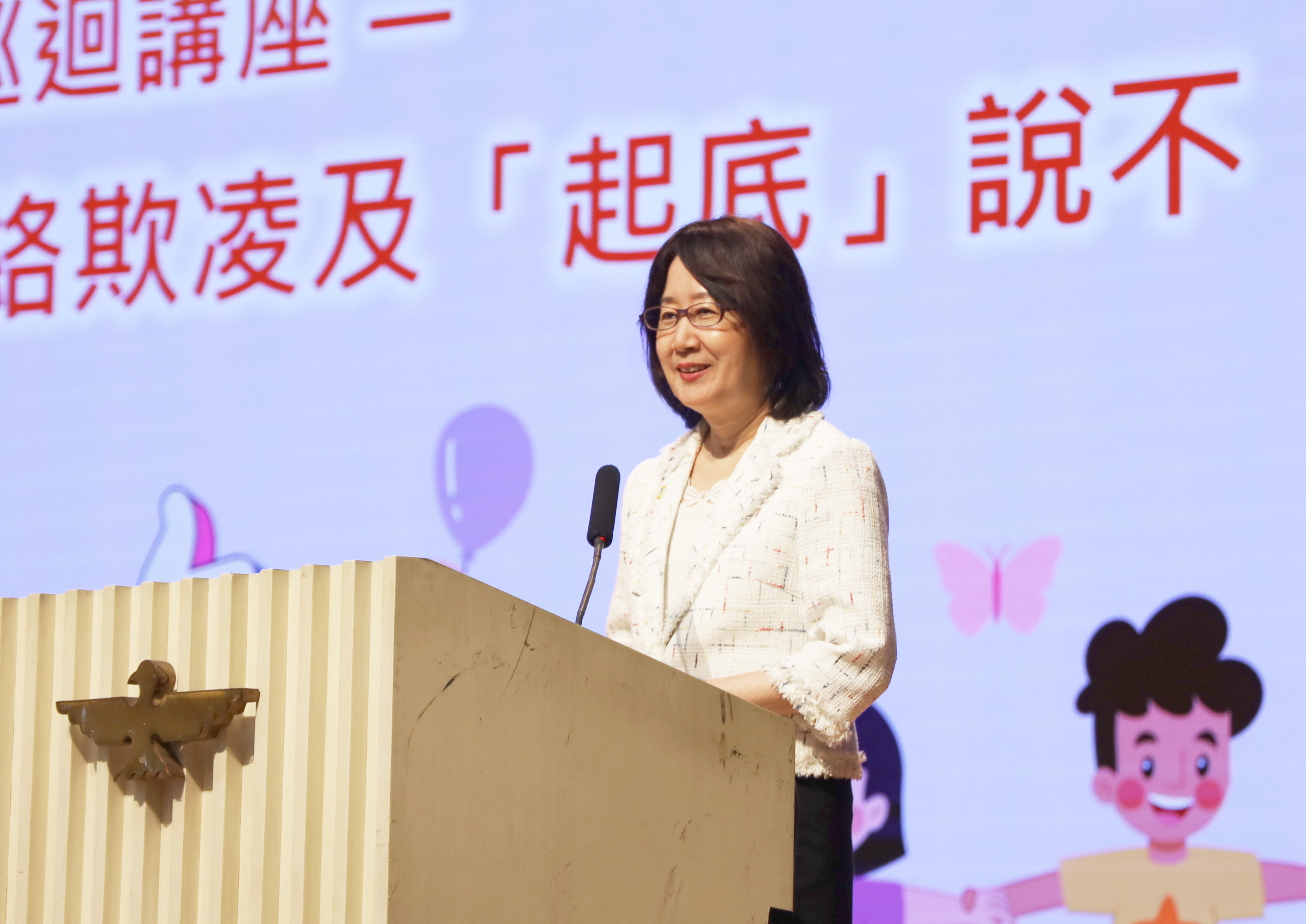 私隐专员钟丽玲在沙田培英中学发表演讲。