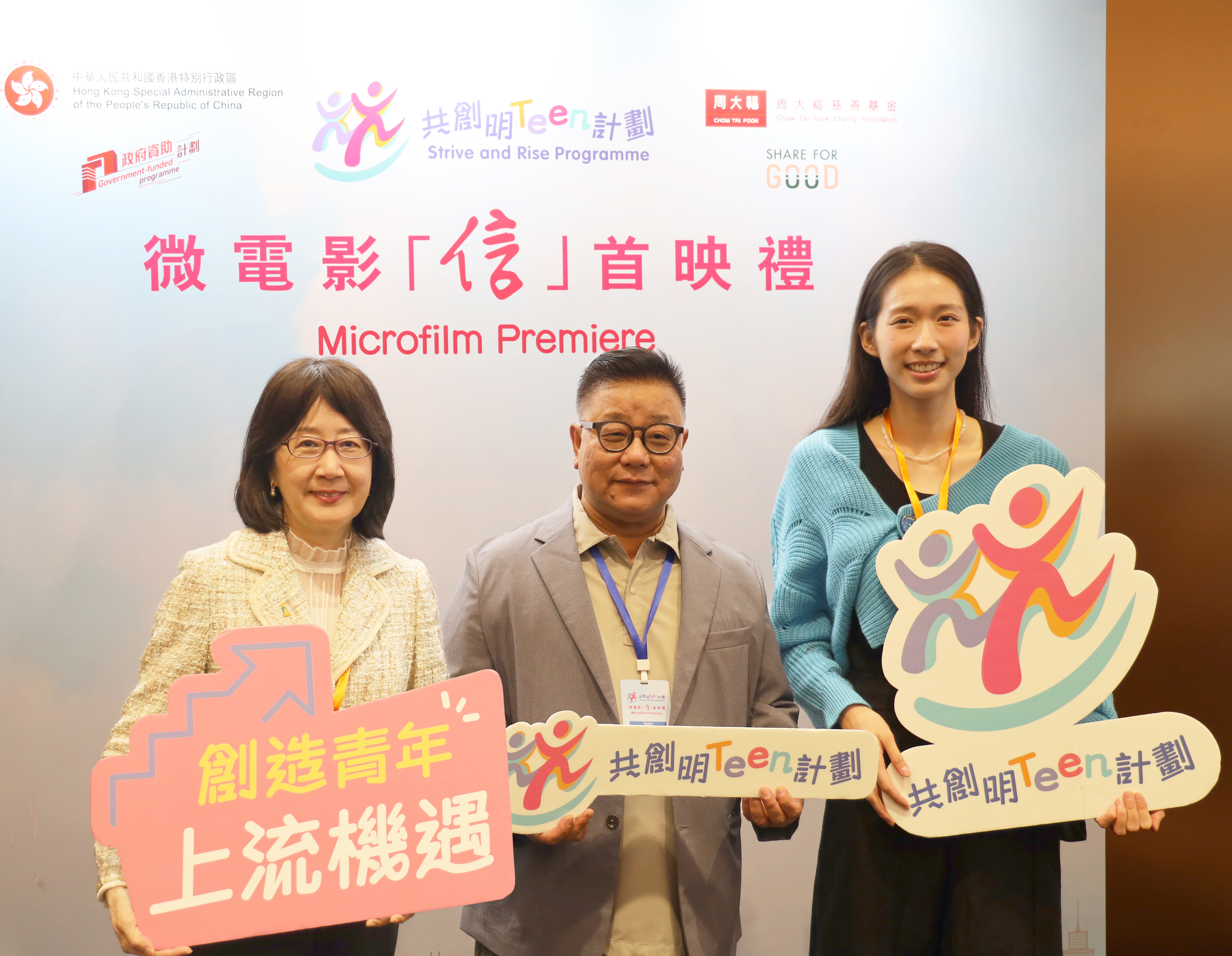 个人资料私隐专员(私隐专员)钟丽玲于10月27日出席「共创明『Teen』计划」微电影《信》的首映礼。《信》是一励志故事,描述计划学员小铃(郑淽月饰演)在友师Jeanie(廖子妤饰演)指导下,由过往缺乏自尊感,到建立积极正向人生观,为自己未来定下明确目标。