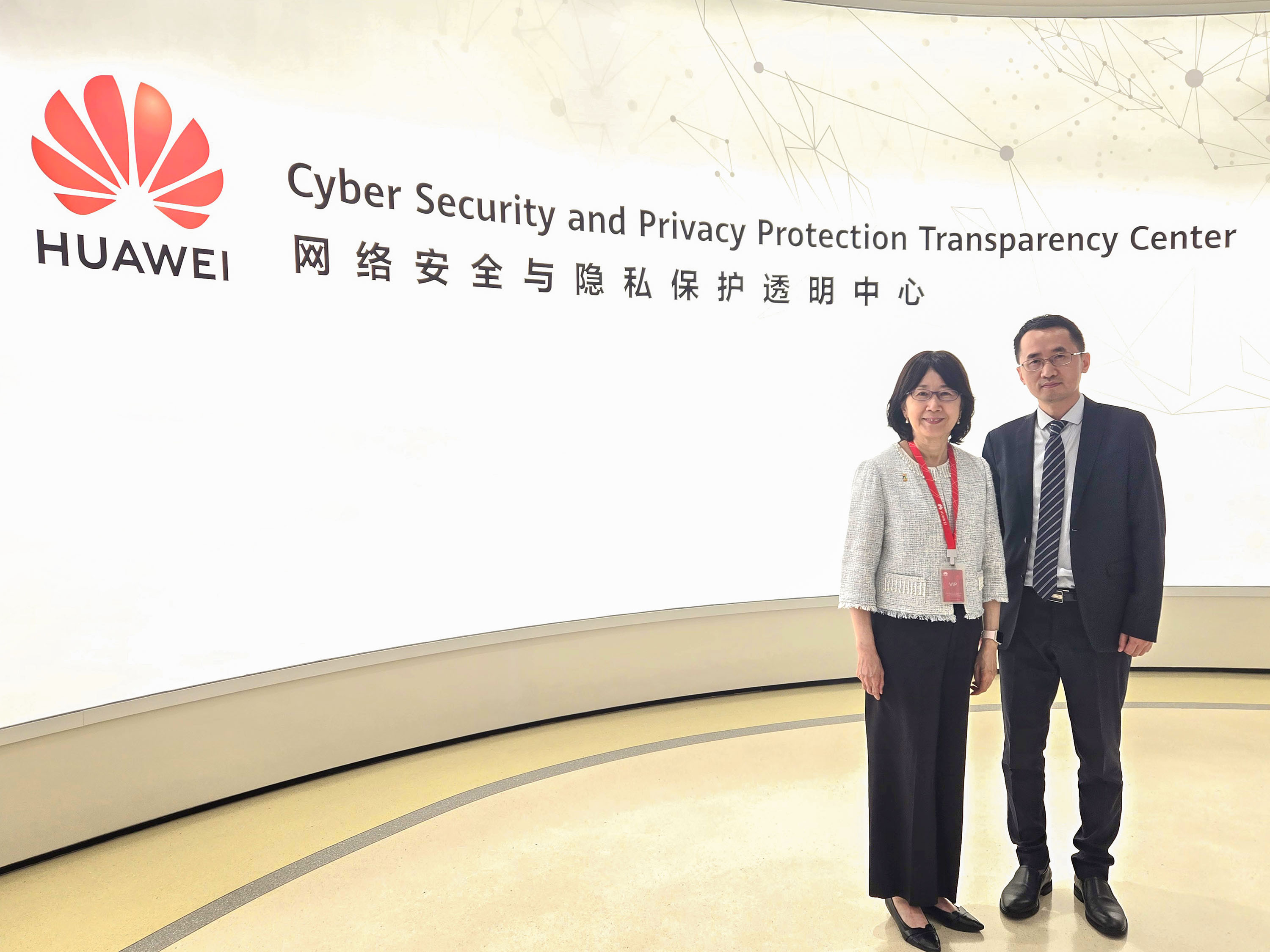 私隐专员钟丽玲(左)参观华为东莞基地。