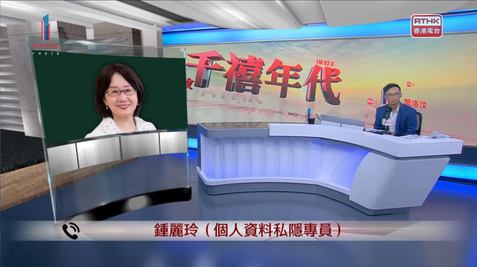 私隐专员钟丽玲接受香港电台第一台《千禧年代》访问。