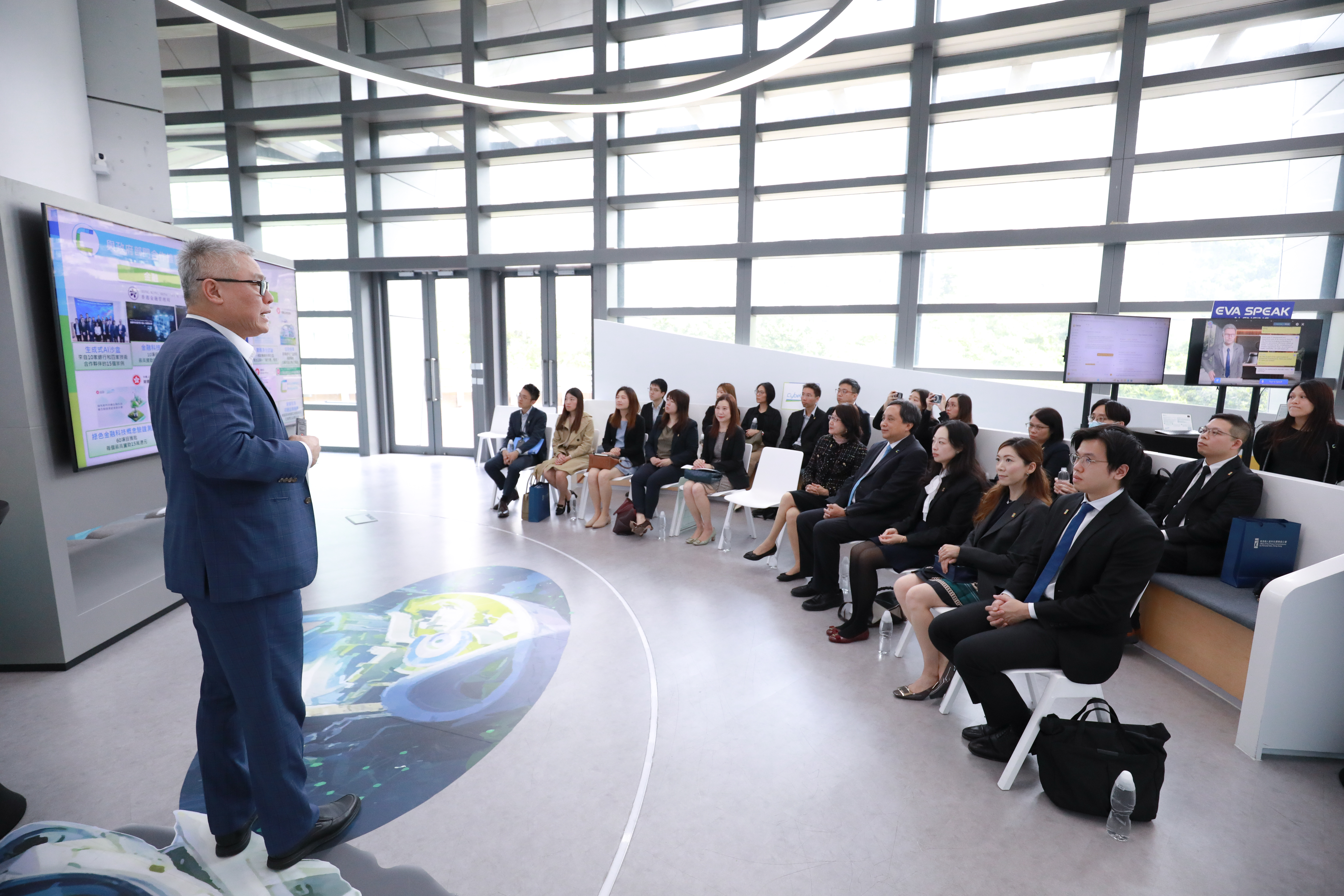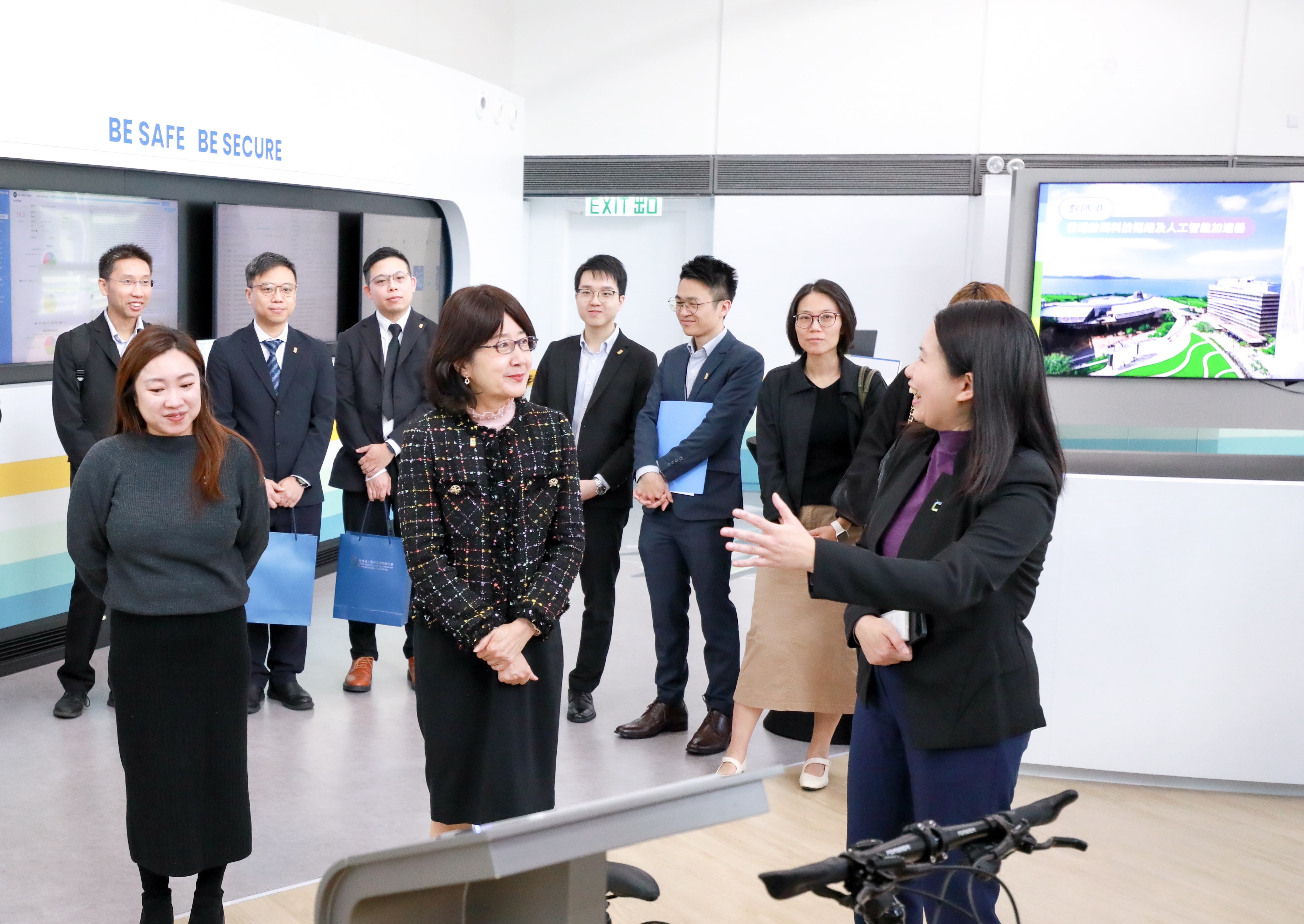 到访期间,私隐专员钟丽玲与数码港董事局主席陈细明先生, BBS, JP及数码港行政总裁郑松岩博士, JP就推动香港数字经济和人工智能安全及发展议题进行交流。