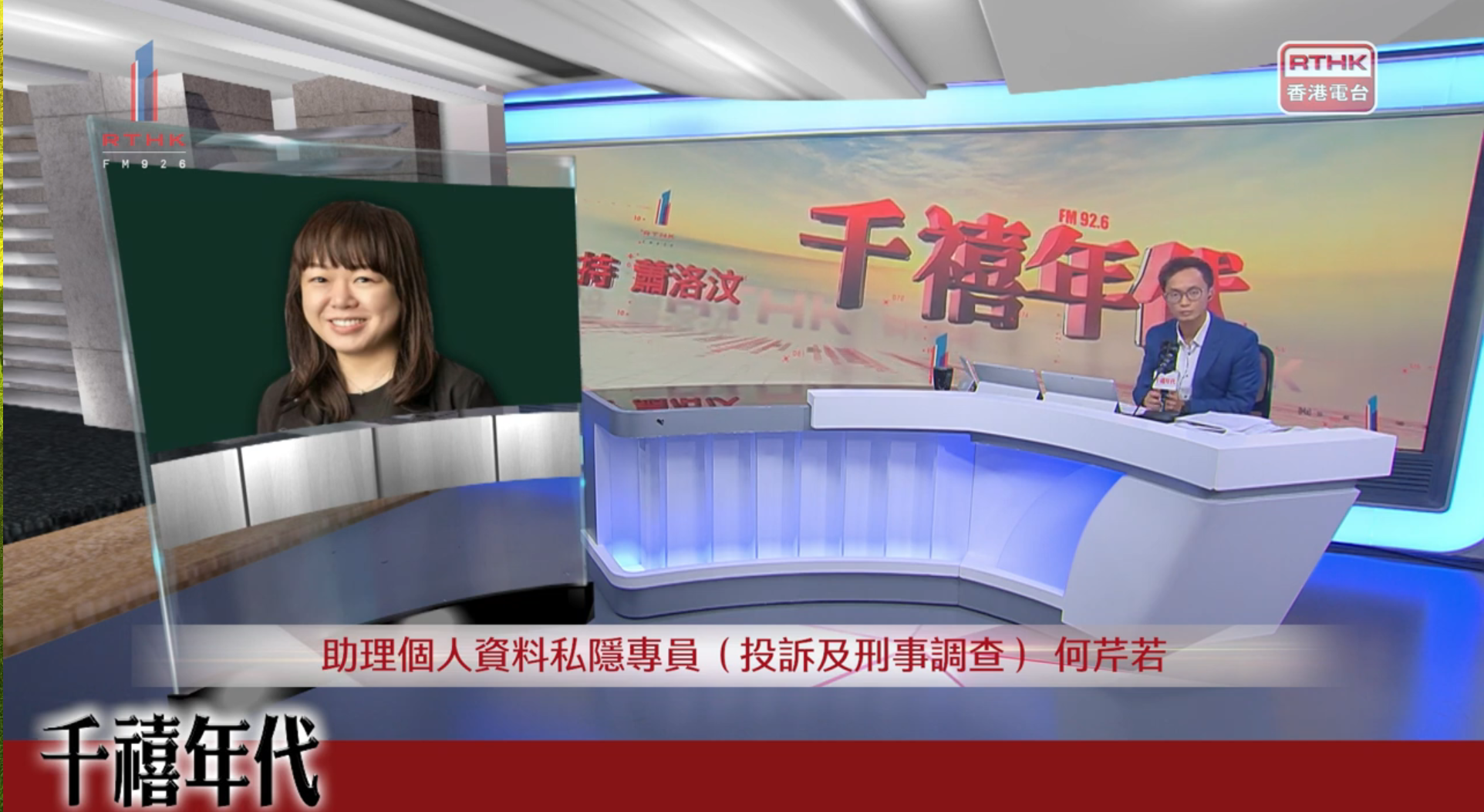 助理私隐专员(投诉及刑事调查)何芹若接受香港电台第一台《千禧年代》访问。