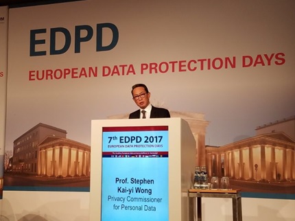 (2017年5月17日) 香港個人資料私隱專員(「私隱專員」)黃繼兒獲邀於2017年5月15日在德國柏林舉行的第七屆歐洲資料保障日(European Data Protection Days)作主題演講。超過200名代表出席是次會議,他們分別來自20多個國家的資料保障執法機關、業務與私隱有關的企業、商業機構、專家及學者。