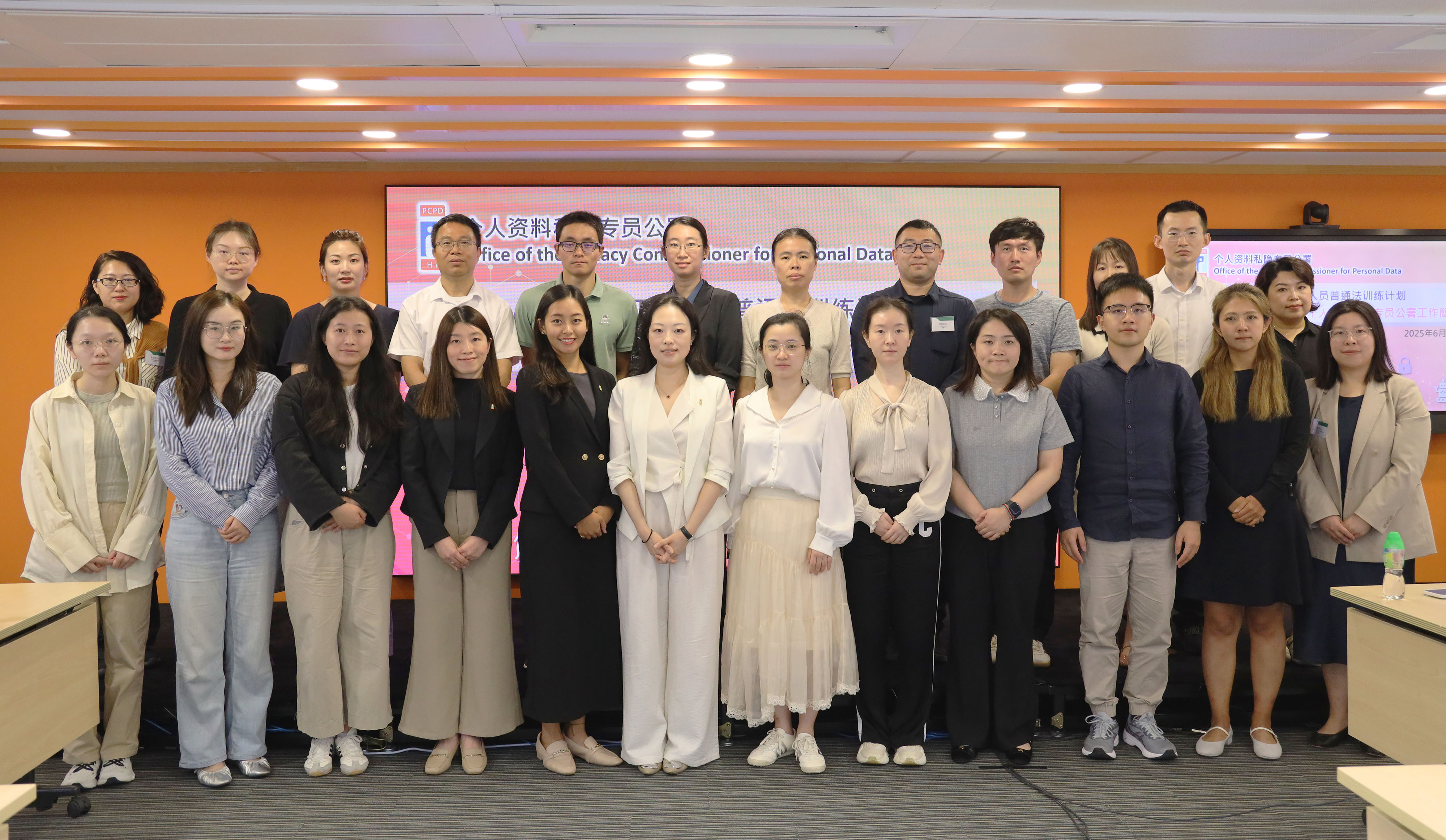 私隱專員公署代表助理個人資料私隱專員(合規、環球事務及研究)王雅媛女士(前排左六)、律師周沅瑩女士(前排左五)及企業傳訊部總監周映彤女士(前排左四)接待内地官員代表團。