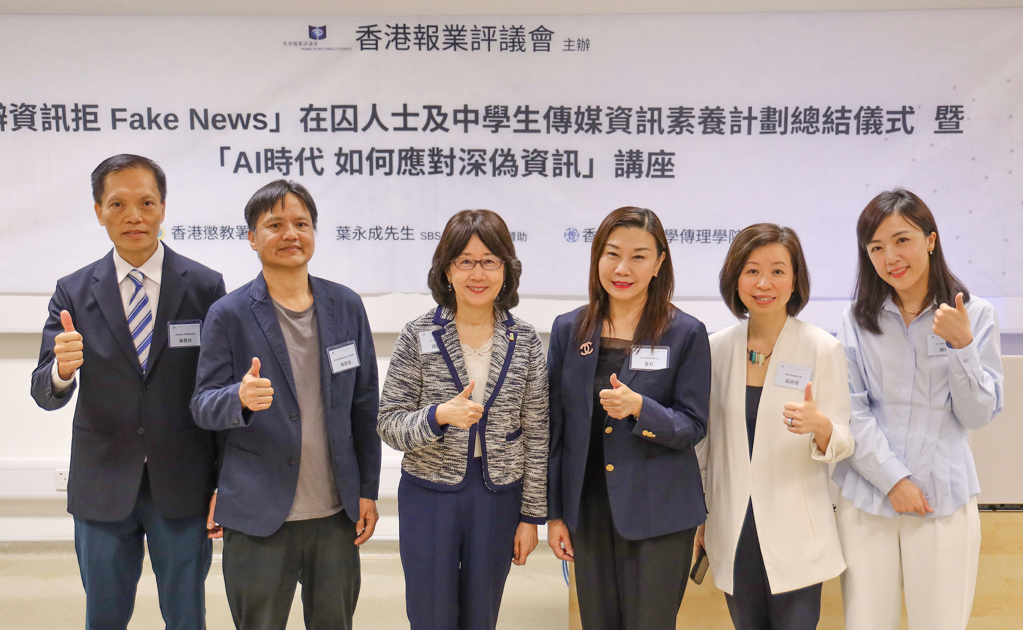 個人資料私隱專員(私隱專員)鍾麗玲於11月1日出席由香港報業評議會主辦的「明辨資訊拒 Fake News」在囚人士及中學生資訊素養計劃總結儀式暨「AI 時代 如何應對深偽資訊」講座,並擔任講者。